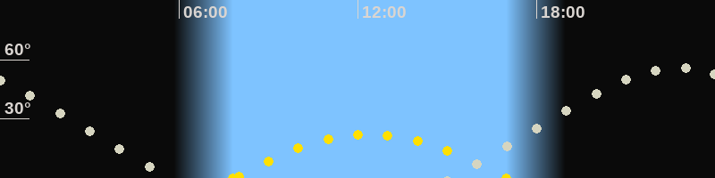 Höchster Sonnenstand (Kulmination)12:23 Uhr (h = 22.2°)
