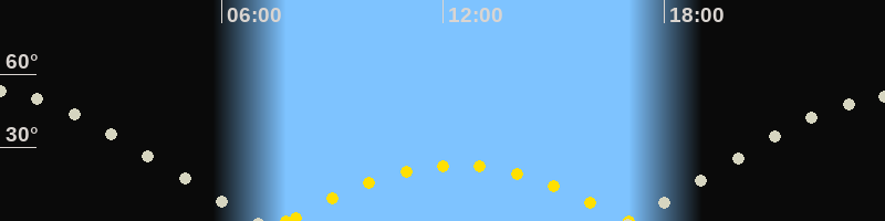 | Höchster Sonnenstand (Kulmination) | 12:24 Uhr (h = 22.8°) |