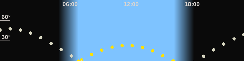 Höchster Sonnenstand (Kulmination)12:24 Uhr (h = 23.3°)