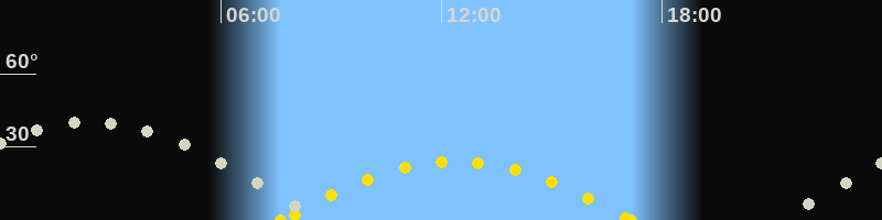 | Höchster Sonnenstand (Kulmination) | 12:24 Uhr (h = 24°) |