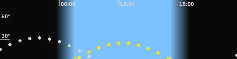 | Höchster Sonnenstand (Kulmination) | 12:24 Uhr (h = 24.6°) |