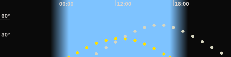 | Höchster Sonnenstand (Kulmination) | 12:23 Uhr (h = 29.4°) |