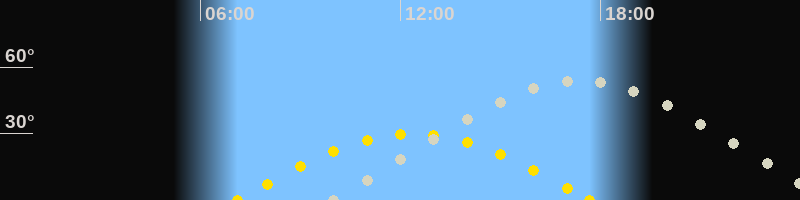 | Höchster Sonnenstand (Kulmination) | 12:23 Uhr (h = 29.8°) |
