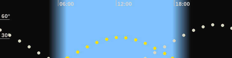 Höchster Sonnenstand (Kulmination)12:22 Uhr (h = 32.1°)