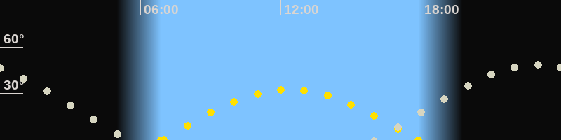 Höchster Sonnenstand (Kulmination)12:22 Uhr (h = 32.4°)