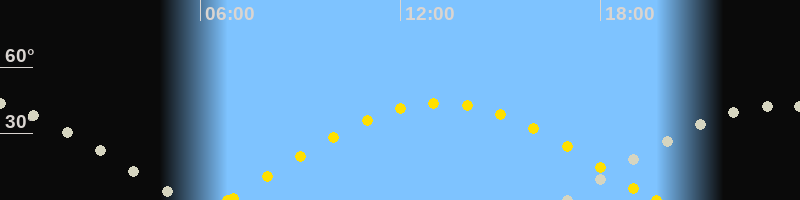 Höchster Sonnenstand (Kulmination)13:14 Uhr (h = 43.8°)