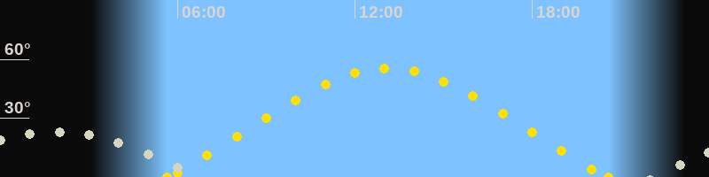 | Höchster Sonnenstand (Kulmination) | 13:06 Uhr (h = 55.5°) |