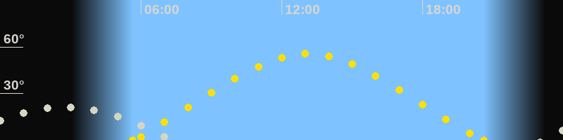 | Höchster Sonnenstand (Kulmination) | 13:06 Uhr (h = 55.8°) |