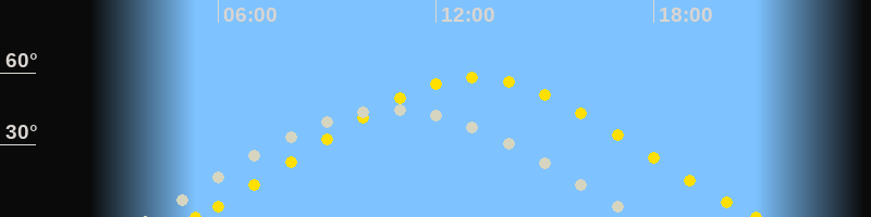 | Höchster Sonnenstand (Kulmination) | 13:06 Uhr (h = 58.1°) |