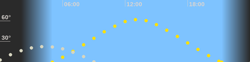 | Höchster Sonnenstand (Kulmination) | 13:08 Uhr (h = 61.9°) |