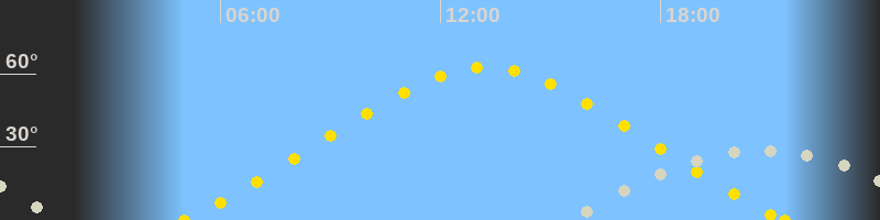 | Höchster Sonnenstand (Kulmination) | 13:13 Uhr (h = 62.6°) |
