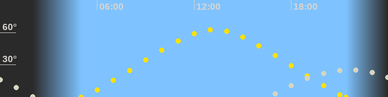 | Höchster Sonnenstand (Kulmination) | 13:13 Uhr (h = 62.6°) |