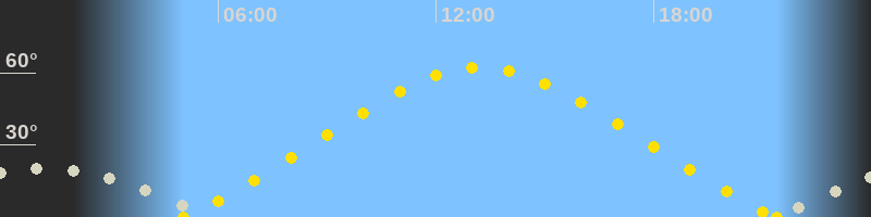| Höchster Sonnenstand (Kulmination) | 13:14 Uhr (h = 62.3°) |