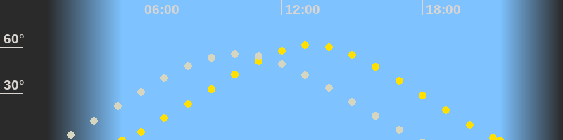 | Höchster Sonnenstand (Kulmination) | 13:15 Uhr (h = 61.2°) |