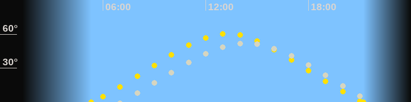 | Höchster Sonnenstand (Kulmination) | 13:16 Uhr (h = 60.5°) |