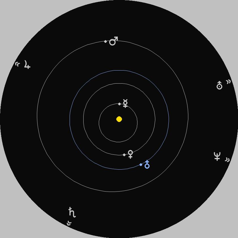 | f Merkur g Venus l Erde h Mars j Jupiter S Saturn A Uranus G Neptun |