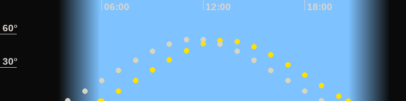 | Höchster Stand (Kulmination) | 11:28 Uhr (h=55.4°) |