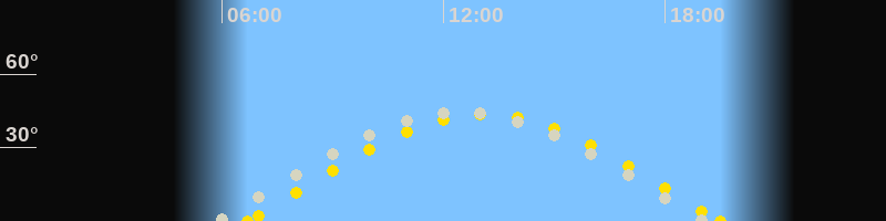| Höchster Sonnenstand (Kulmination) | 13:06 Uhr (h = 43.5°) |