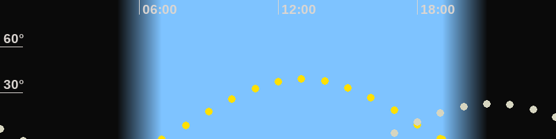 | Sonnenuntergang | 19:05 Uhr im Westen (αAz = 270.5°) |