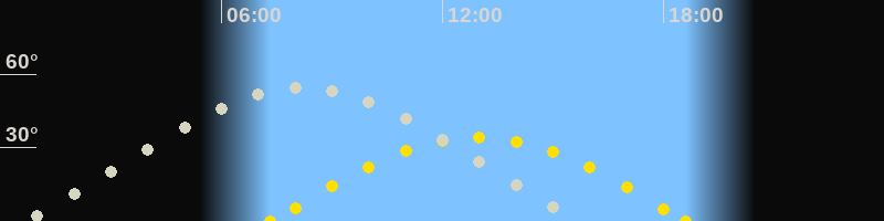 | Höchster Stand (Kulmination) | 08:11 Uhr (h=54.6°) |