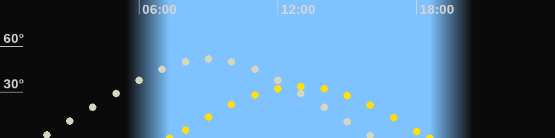 | Sonnenaufgang | 07:20 Uhr im Osten (αAz = 97.8°) |