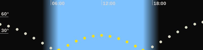 | Höchster Sonnenstand (Kulmination) | 11:54 Uhr (h = 26.5°) |