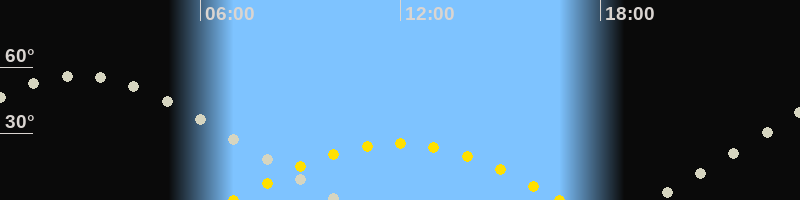 | Höchster Sonnenstand (Kulmination) | 11:53 Uhr (h = 25.5°) |