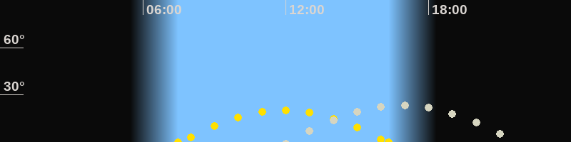 | Höchster Sonnenstand (Kulmination) | 11:55 Uhr (h = 20.3°) |