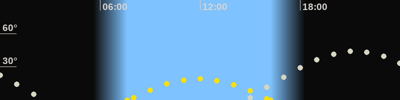 | Höchster Sonnenstand (Kulmination) | 11:56 Uhr (h = 19.1°) |