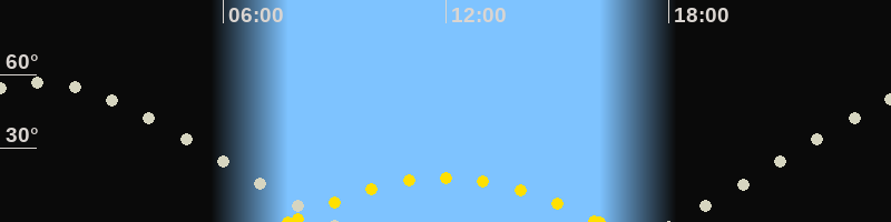 | Höchster Sonnenstand (Kulmination) | 11:57 Uhr (h = 18.2°) |