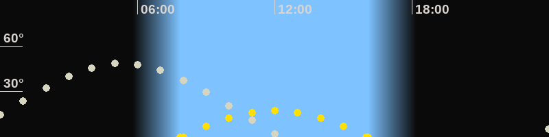 | Höchster Sonnenstand (Kulmination) | 11:59 Uhr (h = 17.3°) |