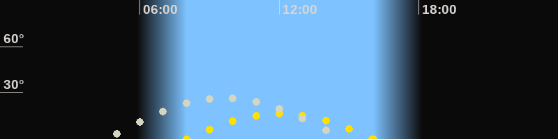 | Höchster Stand (Kulmination) | 09:40 Uhr (h=26.7°) |