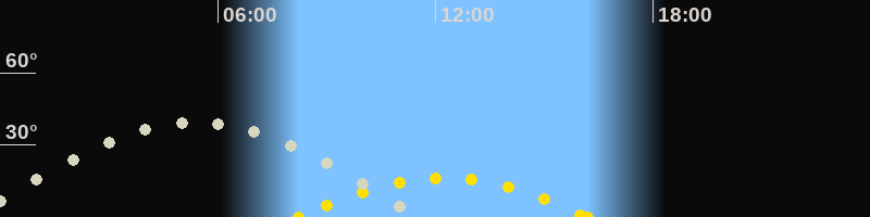 | Höchster Sonnenstand (Kulmination) | 12:13 Uhr (h = 16.3°) |