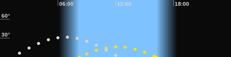 | Höchster Sonnenstand (Kulmination) | 12:14 Uhr (h = 16.4°) |