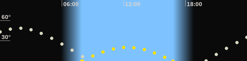 | Höchster Sonnenstand (Kulmination) | 12:22 Uhr (h = 20.5°) |