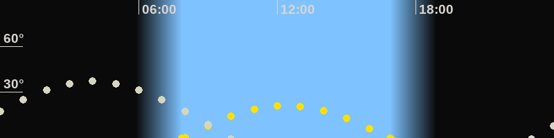 | Höchster Sonnenstand (Kulmination) | 12:23 Uhr (h = 21.3°) |