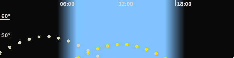 | Höchster Sonnenstand (Kulmination) | 12:23 Uhr (h = 21.5°) |