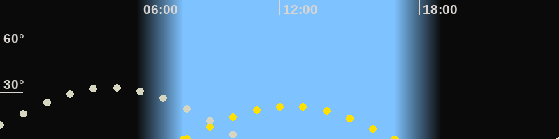 | Höchster Sonnenstand (Kulmination) | 12:23 Uhr (h = 21.5°) |