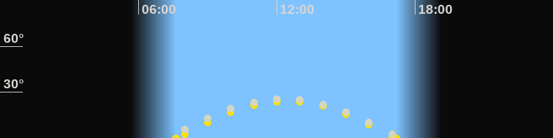 | Höchster Sonnenstand (Kulmination) | 12:24 Uhr (h = 24.2°) |