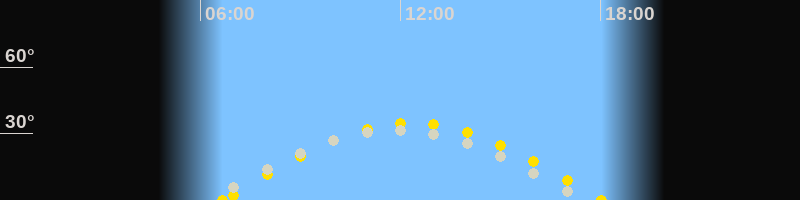 Höchster Sonnenstand (Kulmination)12:20 Uhr (h = 34.7°)