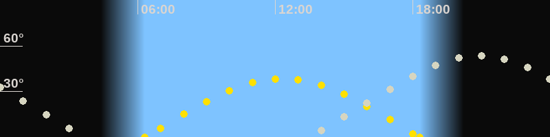 Höchster Sonnenstand (Kulmination)12:18 Uhr (h = 38.6°)