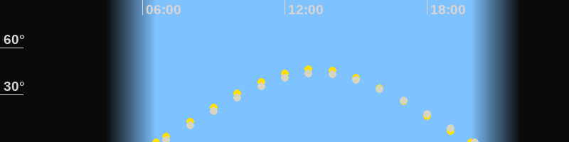 | Höchster Sonnenstand (Kulmination) | 13:12 Uhr (h = 46.4°) |