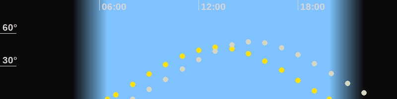 | Sonnenaufgang | 06:29 Uhr im Osten (αAz = 77°) |