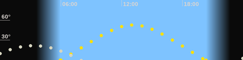 | Sonnenaufgang | 05:56 Uhr im Osten (αAz = 67.9°) |