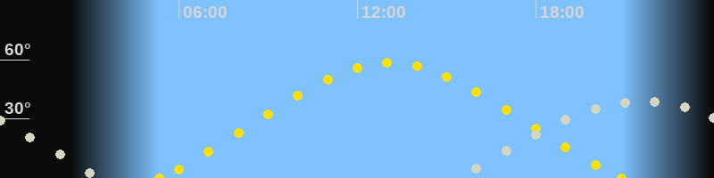 | Höchster Sonnenstand (Kulmination) | 13:06 Uhr (h = 58.5°) |