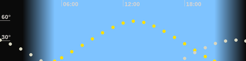 | Höchster Sonnenstand (Kulmination) | 13:06 Uhr (h = 59°) |