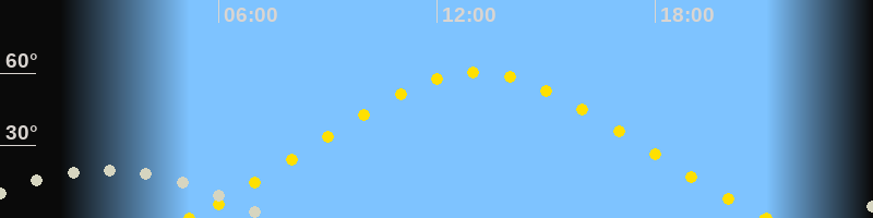 | Höchster Sonnenstand (Kulmination) | 13:07 Uhr (h = 60.2°) |