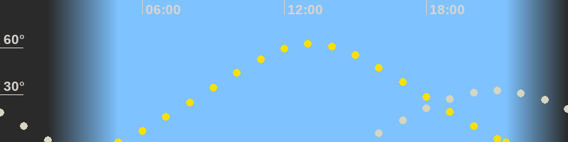| Höchster Sonnenstand (Kulmination) | 13:10 Uhr (h = 62.6°) |