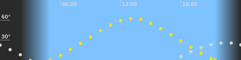 Höchster Sonnenstand (Kulmination)13:11 Uhr (h = 62.6°)