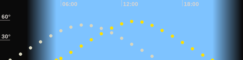 | Höchster Sonnenstand (Kulmination) | 13:16 Uhr (h = 58.1°) |